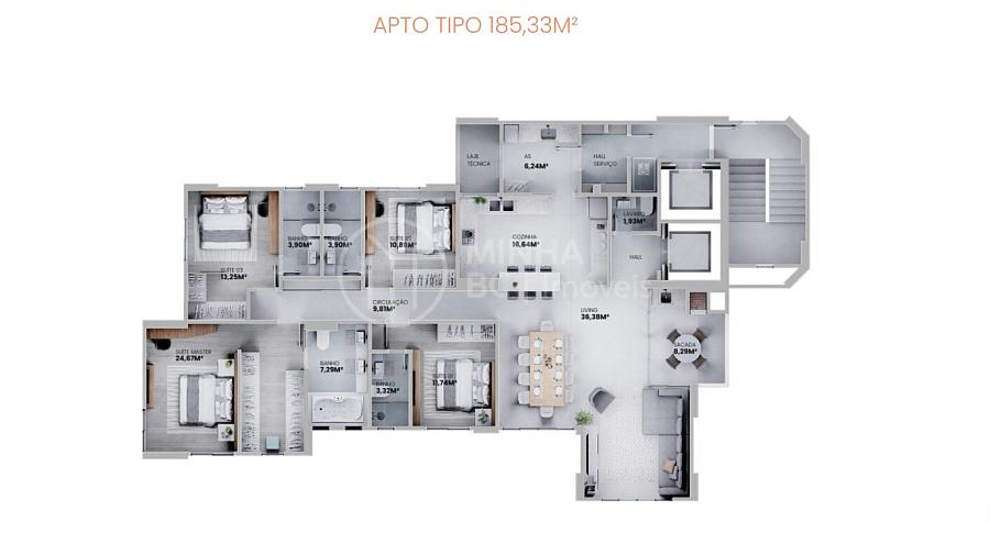 185,33 m² de área privativa